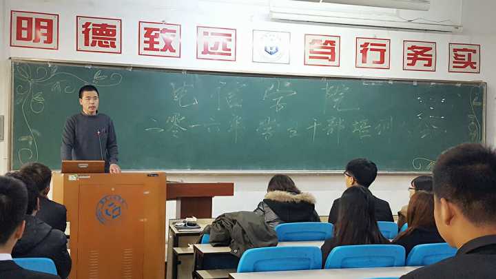 谷老师提出:作为一名学生干部要有艰辛的路要走,摆正价值观,做一名优秀的学生干部,并希望16级学生干部在学长的带领下一起努力,一起学习,一起成长,一起成功。
